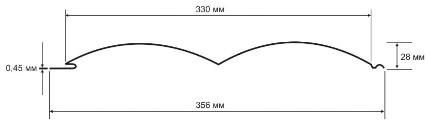 Рабочая ширина – 330 мм, длина – от 0,5 до 6 м с шагом 5 см, толщина металла – 0,45 мм.