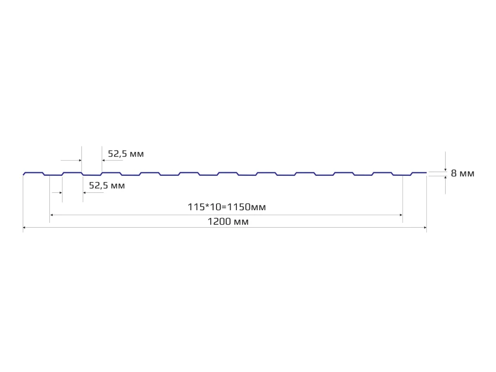 Вместе с тем, лист такого профиля имеет максимальную рабочую ширину - 1150 мм, благодаря чему упрощается монтаж и достигается минимальная стоимость квадратного метра.