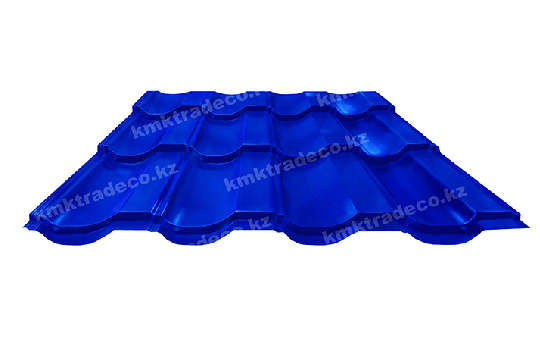 Металлочерепица Панорама – один из самых популярных видов данного кровельного материала. Металлическая кровля имеет максимальное сходство с натуральной черепицей. Листы изготовлены из тонколистовой стали толщиной 0.4 мм с полимерным защитным слоем. Цвет – RAL 5005 Сигнальный синий. Высота профиля – 25+/-1 мм.