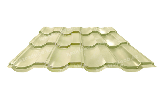 Металлочерепица Панорама – один из самых популярных видов данного кровельного материала. Металлическая кровля имеет максимальное сходство с натуральной черепицей. Листы изготовлены из тонколистовой стали толщиной 0.5 мм с полимерным защитным слоем. Цвет – RAL 1015 Светлая слоновая кость. Высота профиля – 25+/-1 мм.