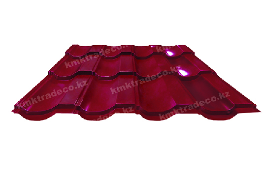 Металлочерепица Панорама – один из самых популярных видов данного кровельного материала. Металлическая кровля имеет максимальное сходство с натуральной черепицей. Листы изготовлены из тонколистовой стали толщиной 0.5 мм с полимерным защитным слоем. Цвет – RAL 3003 Рубиново-красный. Высота профиля – 25+/-1 мм.