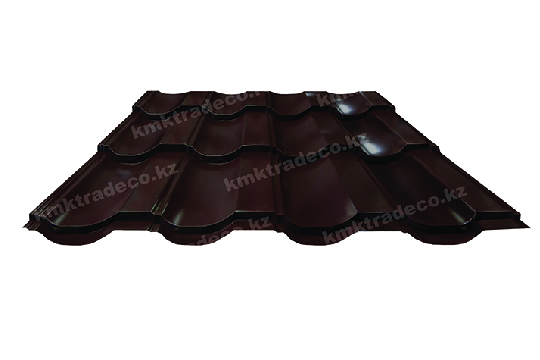 Металлочерепица Панорама – один из самых популярных видов данного кровельного материала. Металлическая кровля имеет максимальное сходство с натуральной черепицей. Листы изготовлены из тонколистовой стали толщиной 0.5 мм с полимерным защитным слоем. Цвет – RAL 8017 Шоколадно-коричневый. Высота профиля – 25+/-1 мм.