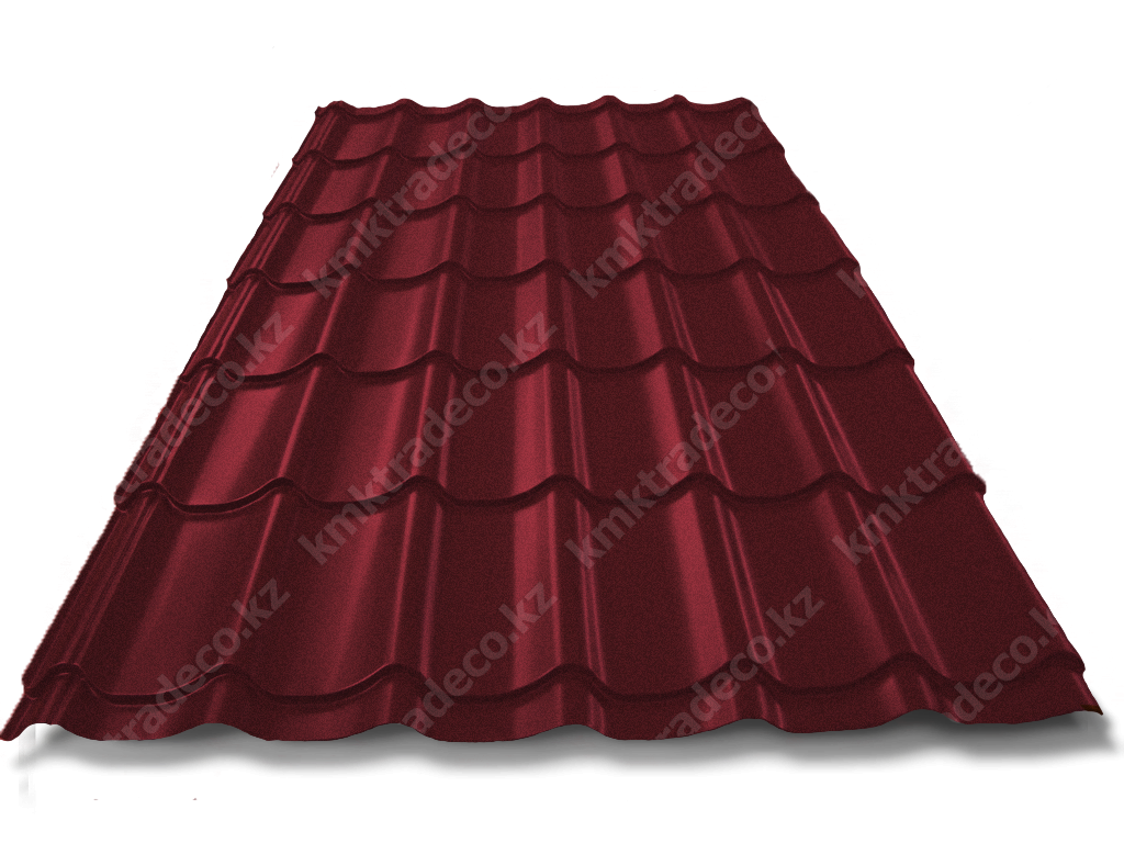 Металлическая кровля имеет максимальное сходство с натуральной черепицей. Листы изготовлены из тонколистовой стали толщиной 0.40 мм с МАТТ (матовым) покрытием премиум-класса - придаёт поверхности кровли необычный матовый «бархатистый» вид. Цвет - RAL 3004 Пурпурно-красный. Высота профиля - 25+/-1 мм.