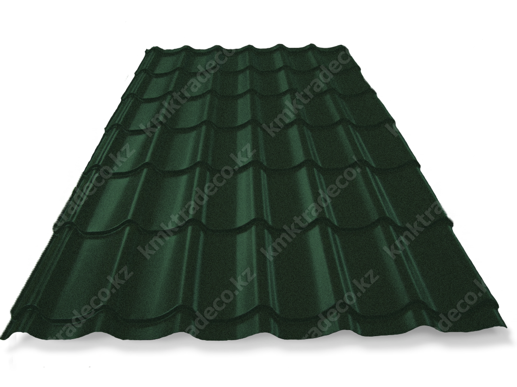 Металлическая кровля имеет максимальное сходство с натуральной черепицей. Листы изготовлены из тонколистовой стали толщиной 0.45 мм с МАТТ (матовым) покрытием премиум-класса – придаёт поверхности кровли необычный матовый «бархатистый» вид. Цвет – RAL 6007 Бутылочно-зеленый. Высота профиля – 25+/-1 мм.