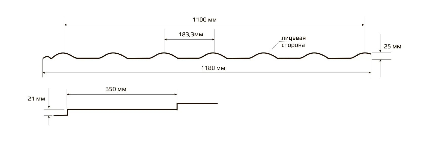 • Ширина листа общая 1180 мм
