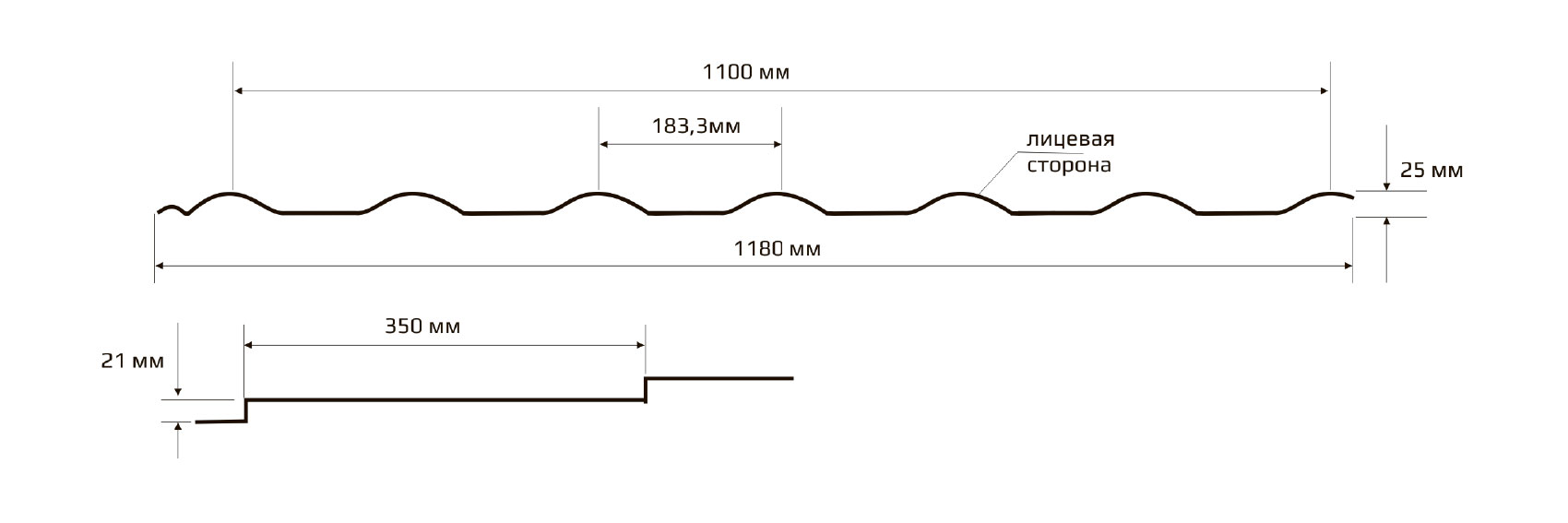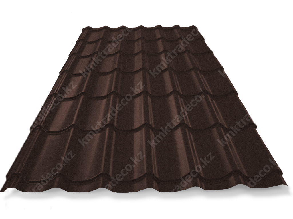 Металлическая кровля имеет максимальное сходство с натуральной черепицей. Листы изготовлены из тонколистовой стали толщиной 0.45 мм с МАТТ (матовым) покрытием премиум-класса – придаёт поверхности кровли необычный матовый «бархатистый» вид. Цвет – RAL 8017 Графитовый серый. Высота профиля – 25+/-1 мм.