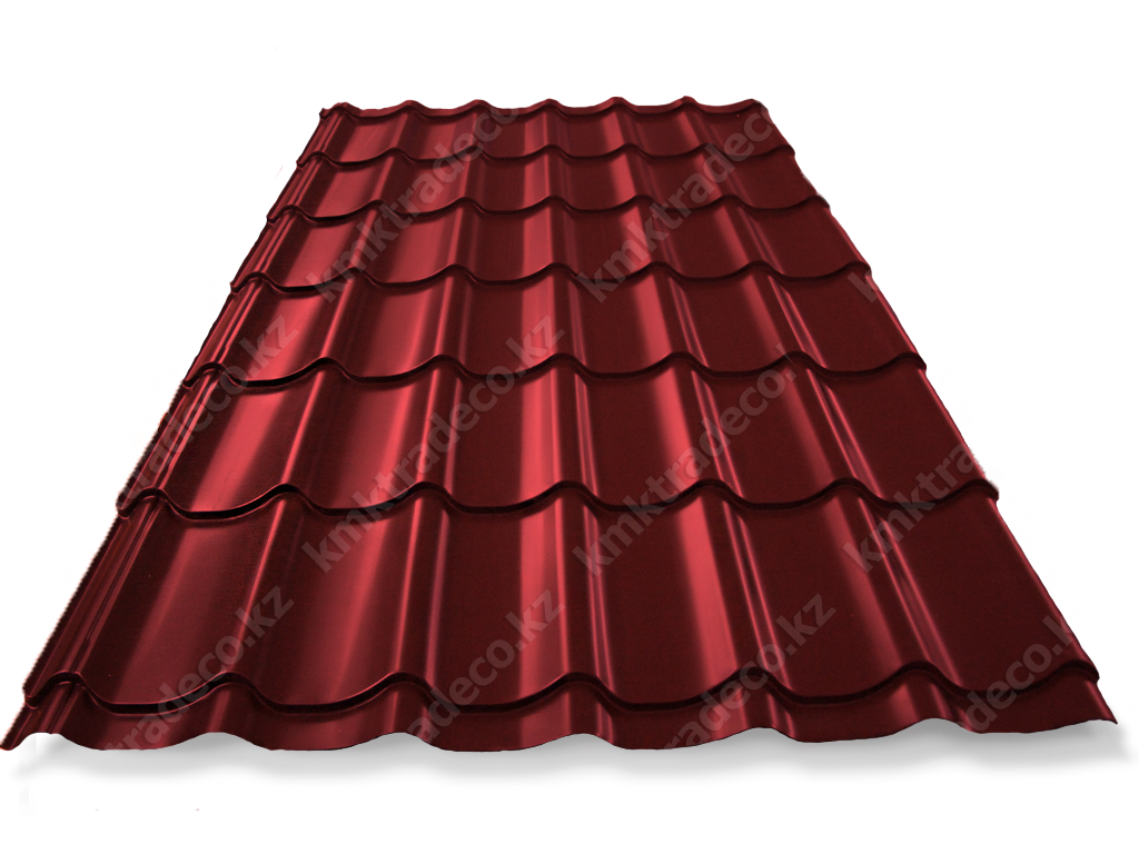 Металлочерепица Супермонтеррей – один из самых популярных видов данного кровельного материала. Металлическая кровля имеет максимальное сходство с натуральной черепицей. Листы изготовлены из тонколистовой стали толщиной 0.5 мм с полимерным защитным слоем. Цвет – RAL 3011 Коричнево-красный. Высота профиля – 25+/-1 мм.