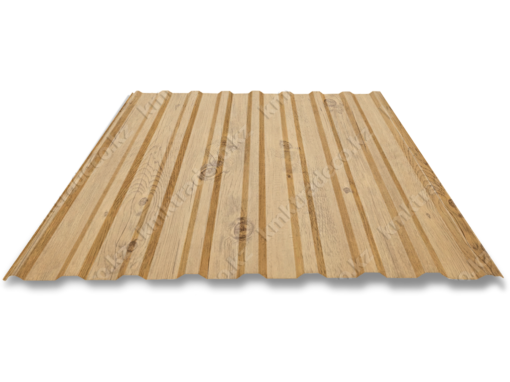 Профнастил НС-18х1150 - один из самых популярных материалов, используемых для изготовления заборов, стеновых облицовочных покрытий, перегородок быстровозводимых зданий. Цвет - Светлое дерево.